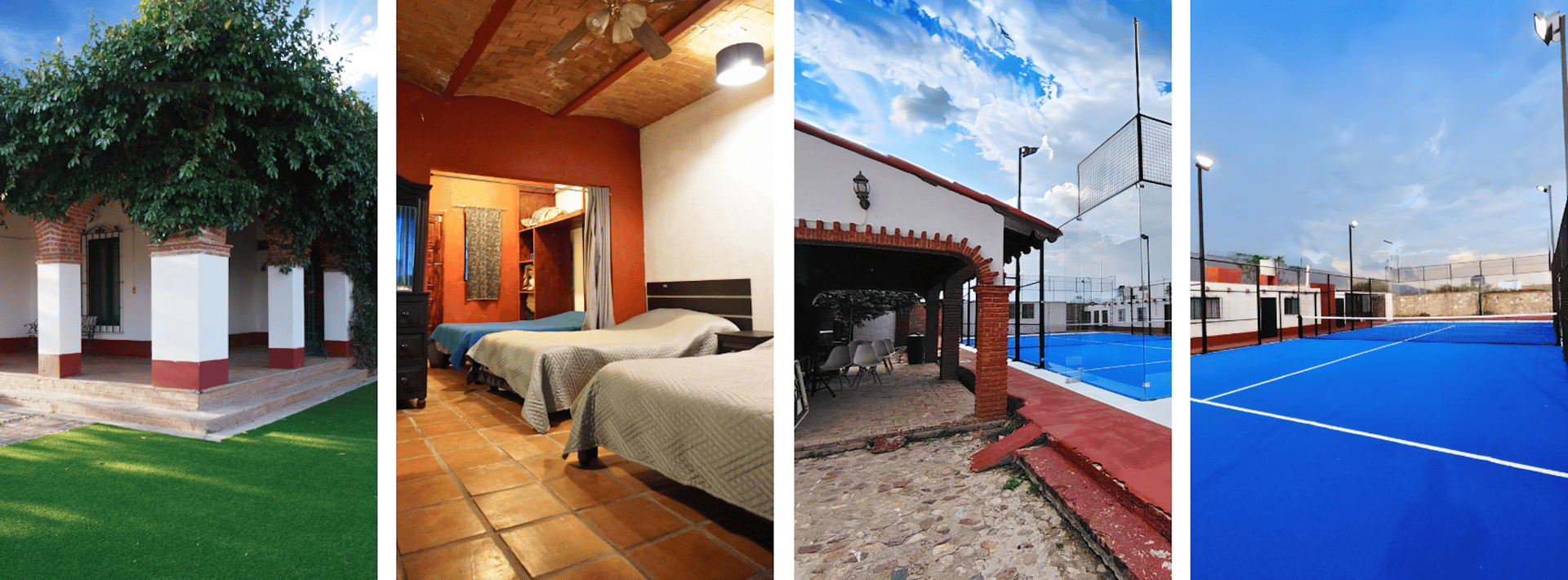 La propiedad cuenta con cuatro áreas principales que se pueden adaptar a tus necesidades de hospedaje o eventos.
